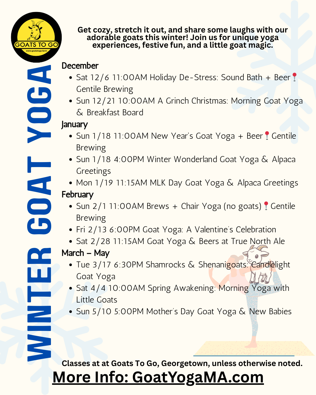Posted on CarolineTrustindex verifies that the original source of the review is Google. Beautiful day w the goats n yoga-very engaging-a perfect date! Staff very user friendly-goats even friendlier!!! A mus for your bucket list-Posted on Nathalie RoystonTrustindex verifies that the original source of the review is Google. I highly recommend Goats to Go! I’ve done “Hike with Goats” and “Brush, Bond & Breathe: Mindful Moments with Morgan Horses”, both were unique, relaxing, and a lot of fun. The staff are warm and supportive, and the farm is a welcoming space.Posted on Rachel DilendickTrustindex verifies that the original source of the review is Google. The goat mingle was so much fun! I don’t know who enjoyed it more, the kids or myself ! The goats were so friendly and adorable. The kids enjoyed feeding and brushing them . So many awesome photo opportunities and an amazing staff!Posted on Maria D'AlessandroTrustindex verifies that the original source of the review is Google. Brush, Bond and Breathe with the Morgan Horses was an amazing experience! Beyond my expectation! The horses are gentle, friendly and beautiful. The owner provided excellent instruction and her helper was great too! I will be back for a Goat Mingle and plan to visit with horses again as well. A must for animal lovers and those looking to connect with them and nature.Posted on Christina CozzaTrustindex verifies that the original source of the review is Google. Was such a beautiful property/farm, and such a fun experience!Posted on mattea S.Trustindex verifies that the original source of the review is Google. Goat yoga was so fun, lots of cute baby goats climbing around and plenty of opportunities to snuggle with them!Posted on Jamie RoyTrustindex verifies that the original source of the review is Google. It was a great time! The staff is amazing and the goats were adorable!! My daughter was the youngest attending the class and they staff made sure she had plenty of goat time!! It was an experience we’ll never forget and look forward to going back!!!Posted on Sheryl MiniscalcoTrustindex verifies that the original source of the review is Google. This beautiful farm is not to be missed! It is so beautiful and magical! Michelle, always has some really fun events going on. Be sure to check out the website. The picnic area was the perfect place for lunch and my group loved it. Whether you want to do some Goat Yoga or have an event there. You will love it!Everyone is so wonderful! Thank you Goats to Go!Verified by TrustindexTrustindex verified badge is the Universal Symbol of Trust. Only the greatest companies can get the verified badge who has a review score above 4.5, based on customer reviews over the past 12 months. Read more
