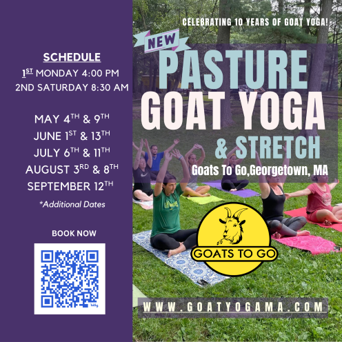 As we look ahead to celebrating our 10th season in 2026—alongside the national excitement of the American 250 celebrations—there’s truly no better time to come experience the charm, joy, and connection that make goat yoga with us so special. Join us for a class, breathe a little deeper, laugh a little louder, and discover why our guests return again and again.